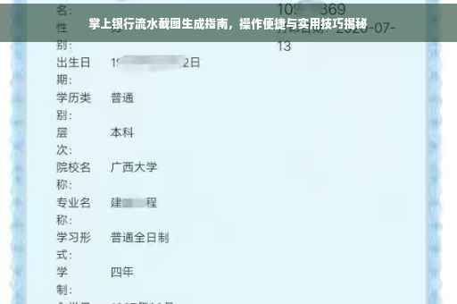 随着互联网技术的不断发展,银行业务也逐渐向数字化转型,掌上银行作为其中的一种重要形式,已经成为人们日常生活中不可或缺的一部分,在进行理财、贷款、信用卡还款等操作时,我们经常需要提供银行流水证明,本文将介绍如何通过掌上银行生成银行流水截图,并分享一些便捷操作和实用技巧。