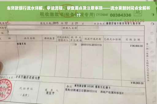 摘要:本文介绍了车贷款银行流水的详细申请流程、审查要点及注意事项。银行流水作为贷款审批的重要依据,其更新时间和准确性对贷款申请至关重要。申请人需提前了解银行流水的要求和更新周期,确保提供真实有效的流水记录,以提高贷款审批成功率。注意事项包括避免流水记录造假、注意流水记录的完整性等。